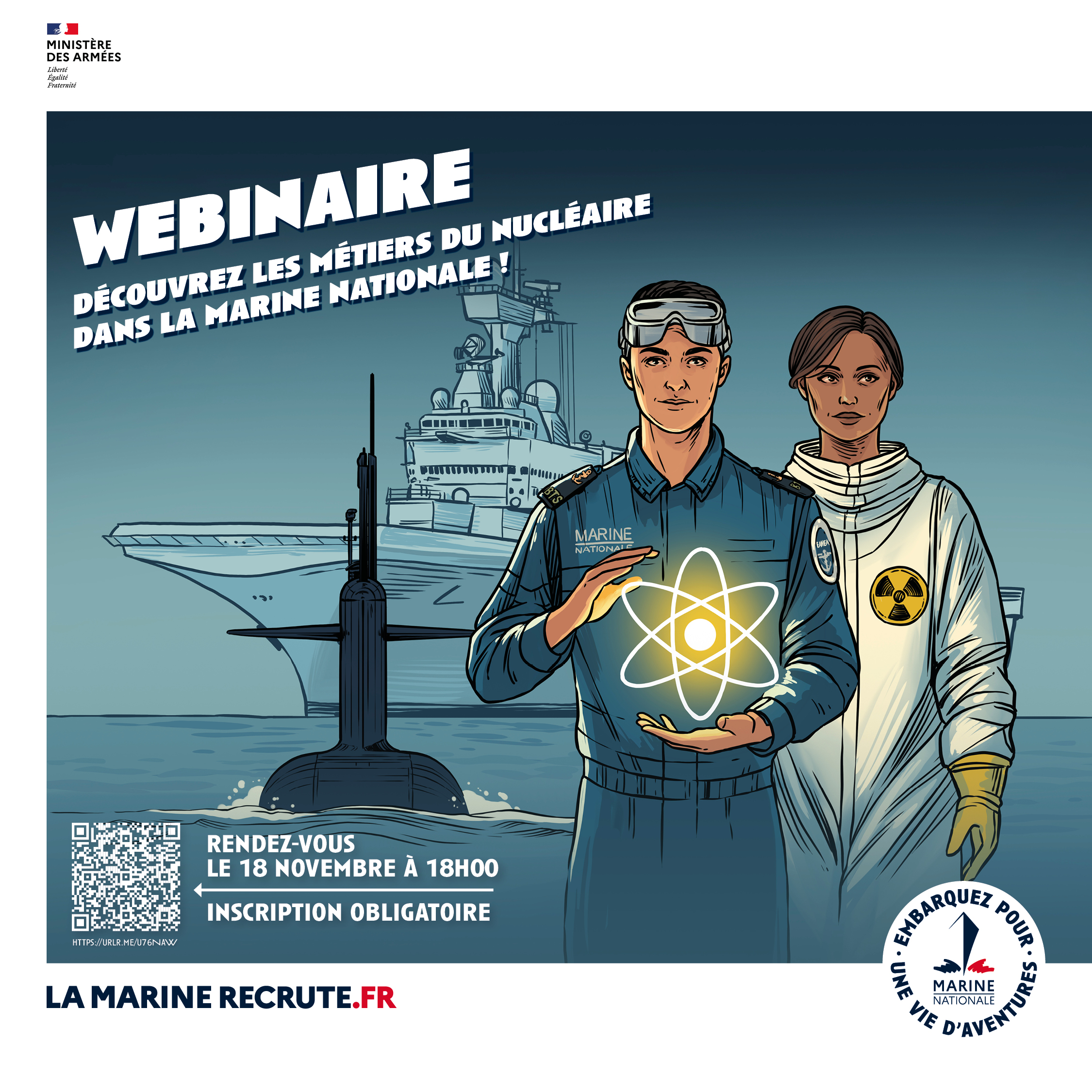 Dans le cadre de ses prérogatives de recrutement, la Marine Nationale organise un webinaire national le mardi 18 novembre à 18h, dédié aux métiers du nucléaire. Cet évènement sera l’occasion de découvrir les enjeux et les opportunités de ce secteur d’activité, grâce à l’intervention de marins spécialistes.